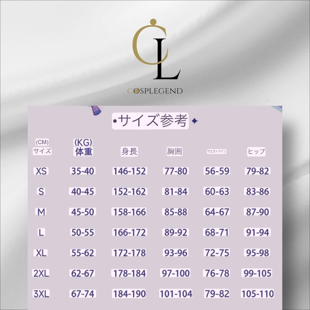 ・サイズ:XS、S、M、L、XL、XXL、XXXL(詳細なサイズ表は商品ページに記載)